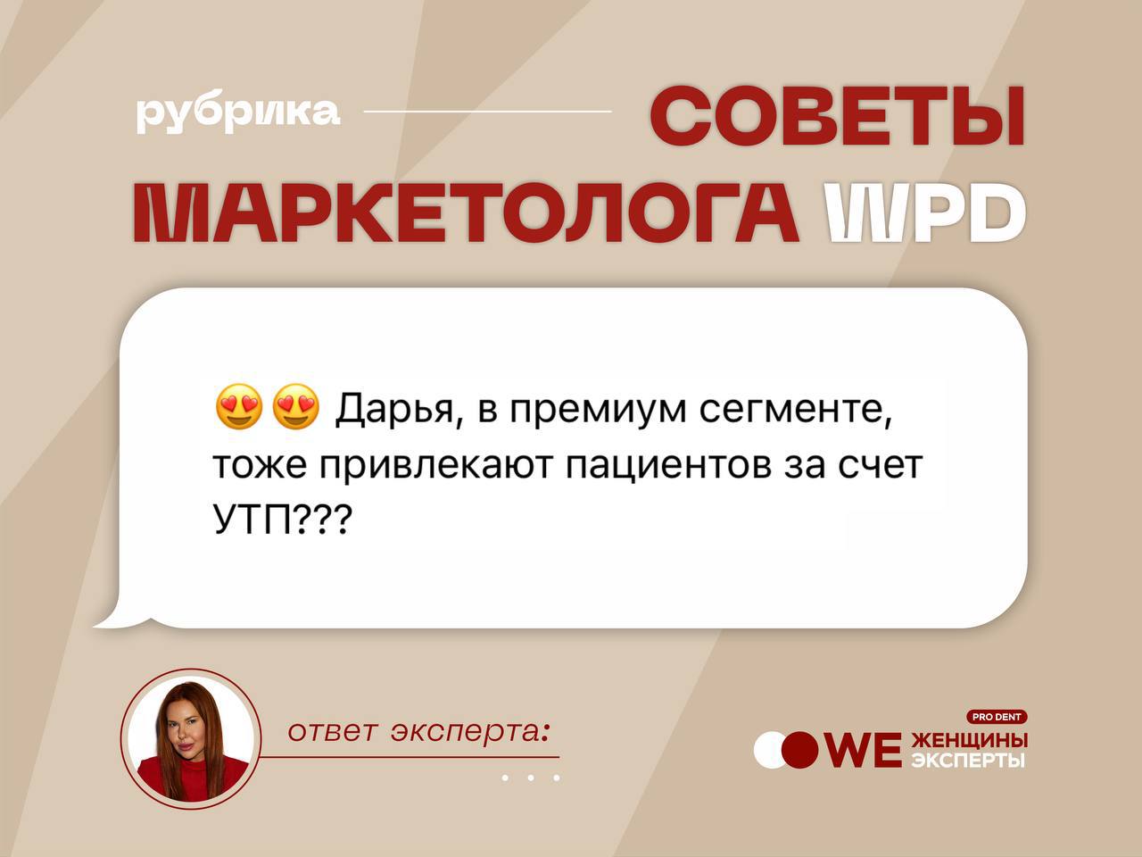 В эфире рубрика “Спроси маркетолога” и с вами Дарья, тот самый маркетолог и второй админ нашего любимого WeProDent